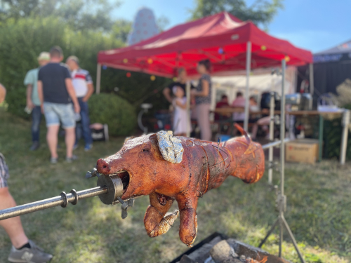 So fanden viele Familien den Weg zum Gerätehaus, wo für die Kinder eine Hüpfburg und für alle Spanferkel am Spieß wartete.
