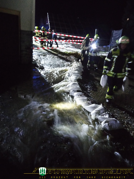 An dieser Stelle möchten wir uns auch bei einer örtlichen Handwerksfirma bedanken, welche uns beim Transport der Sandsäcke vom Bauhof zur Einsatzstelle unterstützt hat.