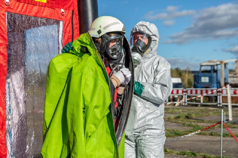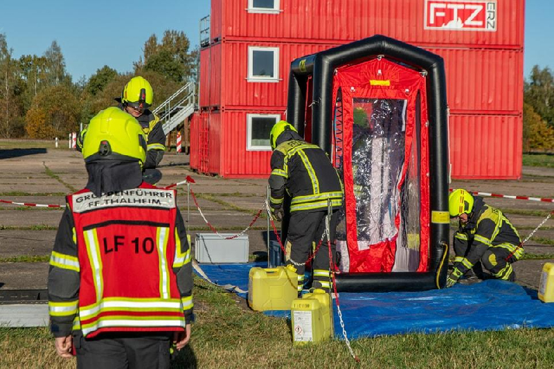 Unsere Aufgabe bestand darin, die Einsatzkräfte, welche mit den Gefahrstoffen in Berührung gekommen waren, zu dekontaminieren.